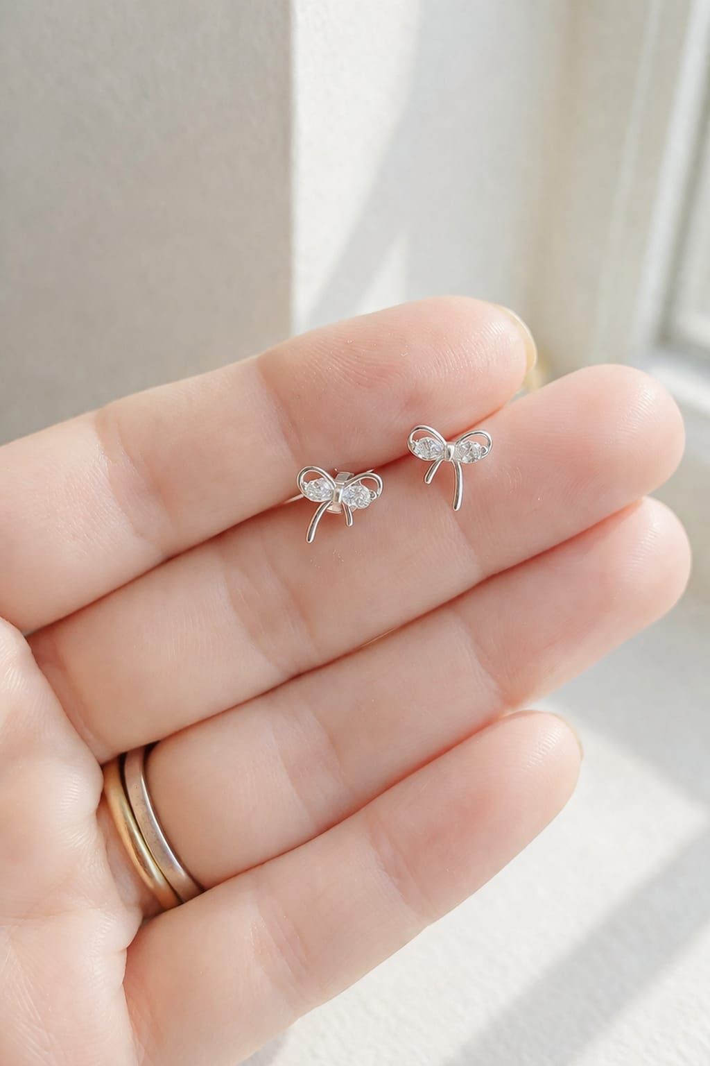 Plata 925 rodinada, detalle moño en cubic, cierre mariposa
