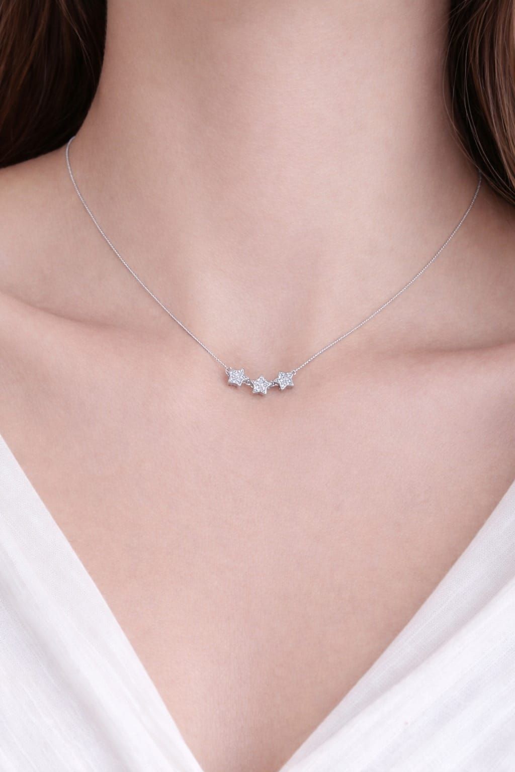 Plata 925, cadena veneciana tres dijes estrellas cristal, 40 cm extensión 5 cm